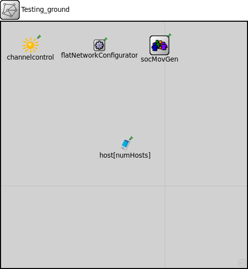 // // <b> The ECMM Testing Ground </b> // // This network include all the necessary modules to create a simulation // scenario, inlcuding the CMM, HCMM and ECMM models. The hosts regarded // are simple MANET hosts with mobility defined by the omnetpp.ini file, // which in this case in the CommunityMov. The DTApp is used to generate // the network traffic, while the tracefile required is generated by the // socMovGen module. // // @see socMovGen, CommunityMov, DTApp // // @author Nikolaos Vastardis // network Testing_ground { parameters: double playgroundSizeX; double playgroundSizeY; int numHosts; @display("bgl=2;bgb=500,500;bgg=333;bgi=,f"); submodules: channelcontrol: ChannelControl { playgroundSizeX = playgroundSizeX; playgroundSizeY = playgroundSizeY; @display("p=60,47"); } host[numHosts]: MobileManetRoutingHost { @display("p=252,250,r=200"); } flatNetworkConfigurator: FlatNetworkConfigurator { @display("p=200,48;is=s"); } socMovGen: socMovGen { @display("p=322,48"); } }