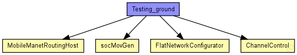 This network include all the necessary modules to create a simulation scenario, inlcuding the CMM, HCMM and ECMM models. The hosts regarded are simple MANET hosts with mobility defined by the omnetpp.ini file, which in this case in the CommunityMov. The DTApp is used to generate the network traffic, while the tracefile required is generated by the socMovGen module.